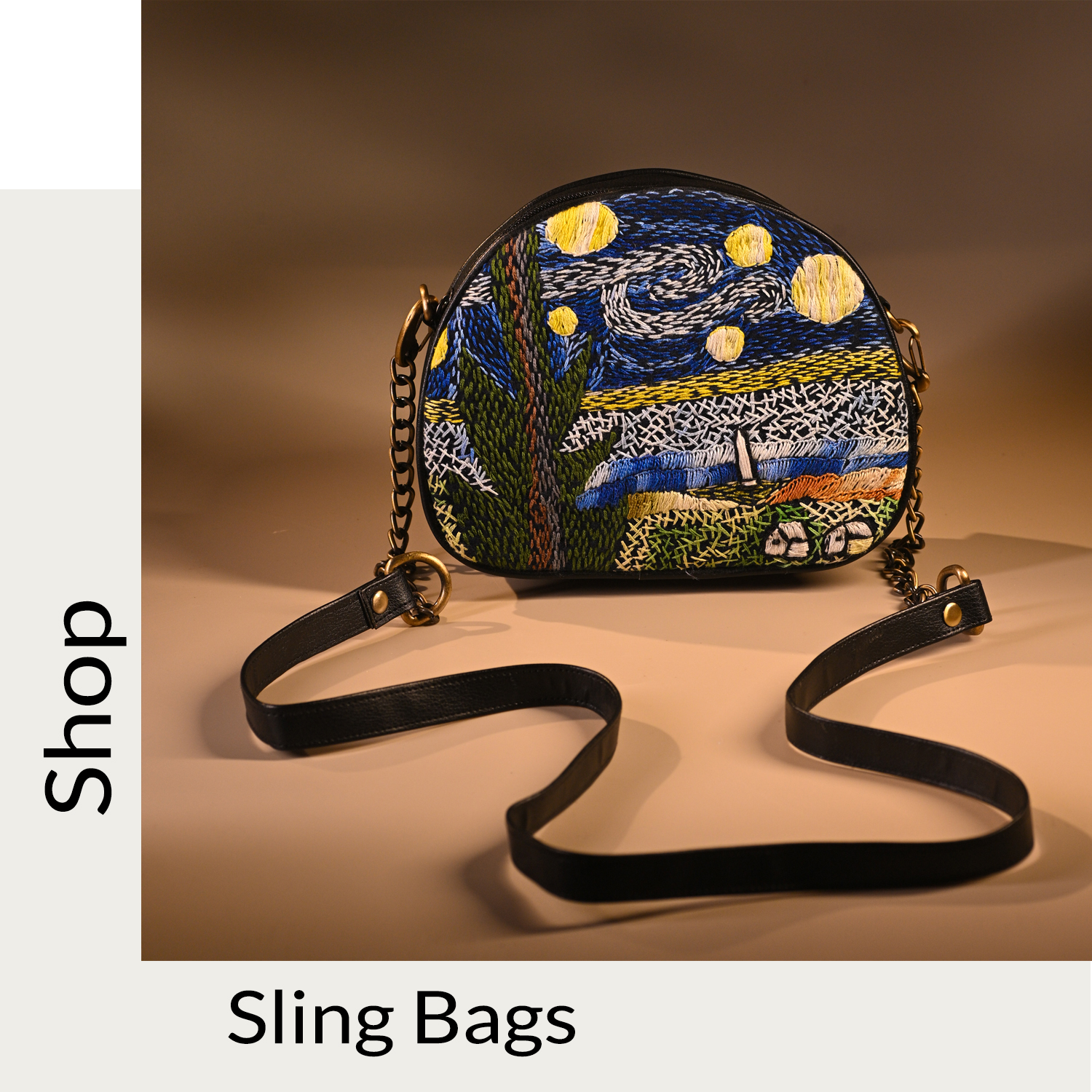 Elevate your style with our handcrafted, hand-embroidered bags. Designed for effortless movement, each piece features detachable, adjustable straps and premium pure leather detailing—so you can travel hands-free, in style. Authentic, artistic, and undeniably trendy.