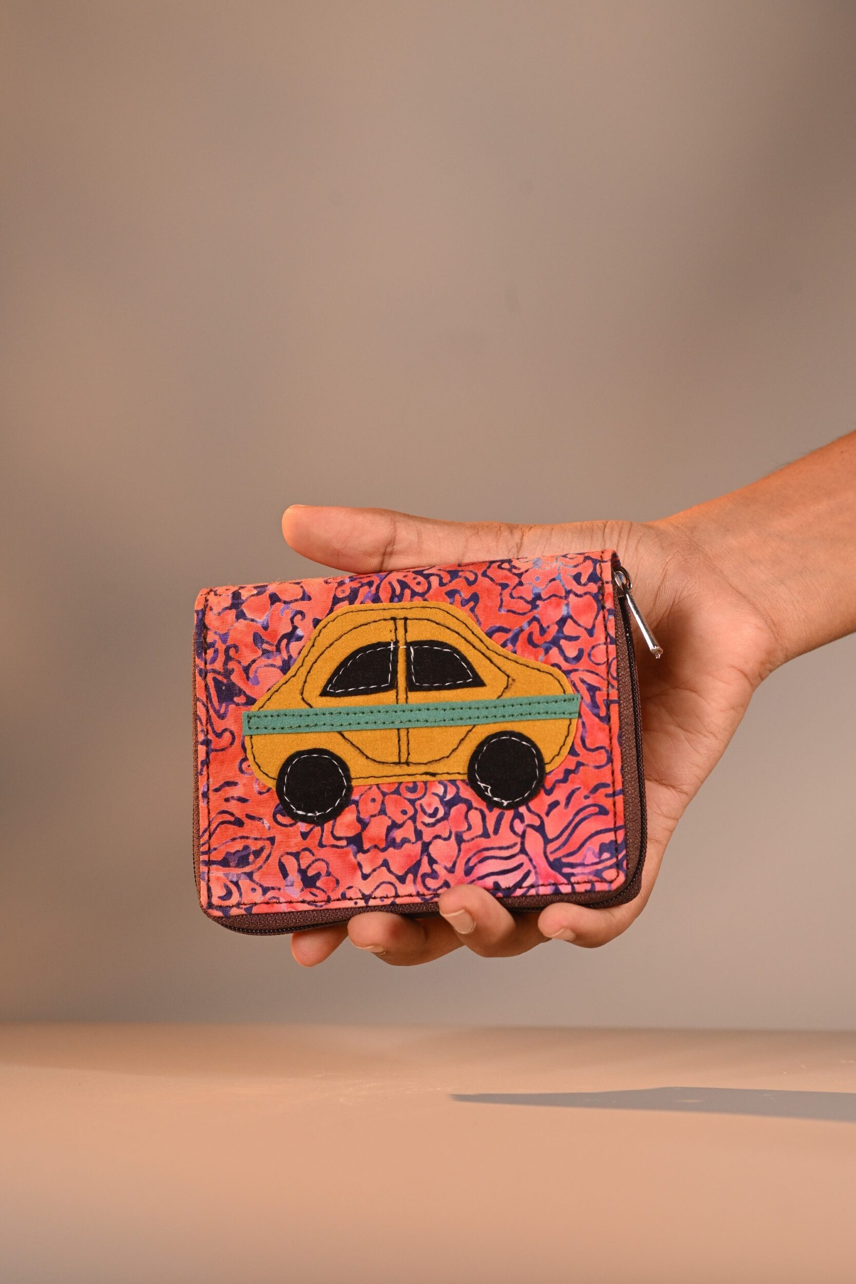 This unique wallet features Kolkata Taxi in a colourful patch work. Its sleek, compact design includes 1 zipper, and space for essentials like your coins, lipstick, and cash.