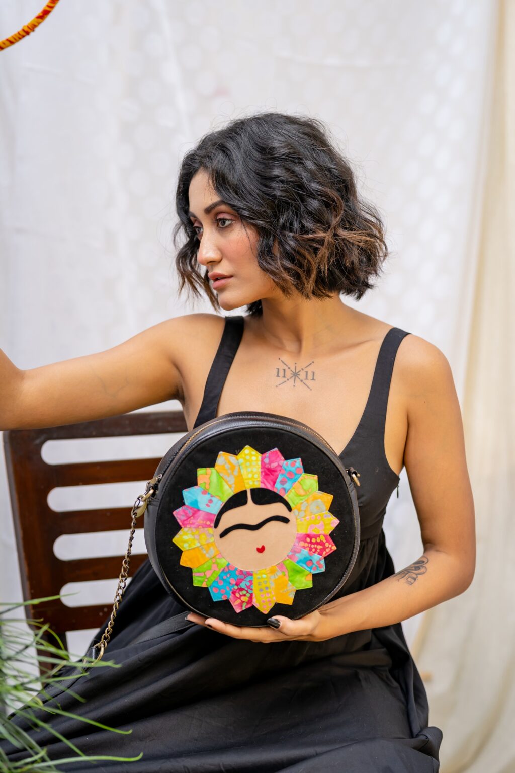 Frida Pointed Petal Round Black 9.5″ Sling Bag