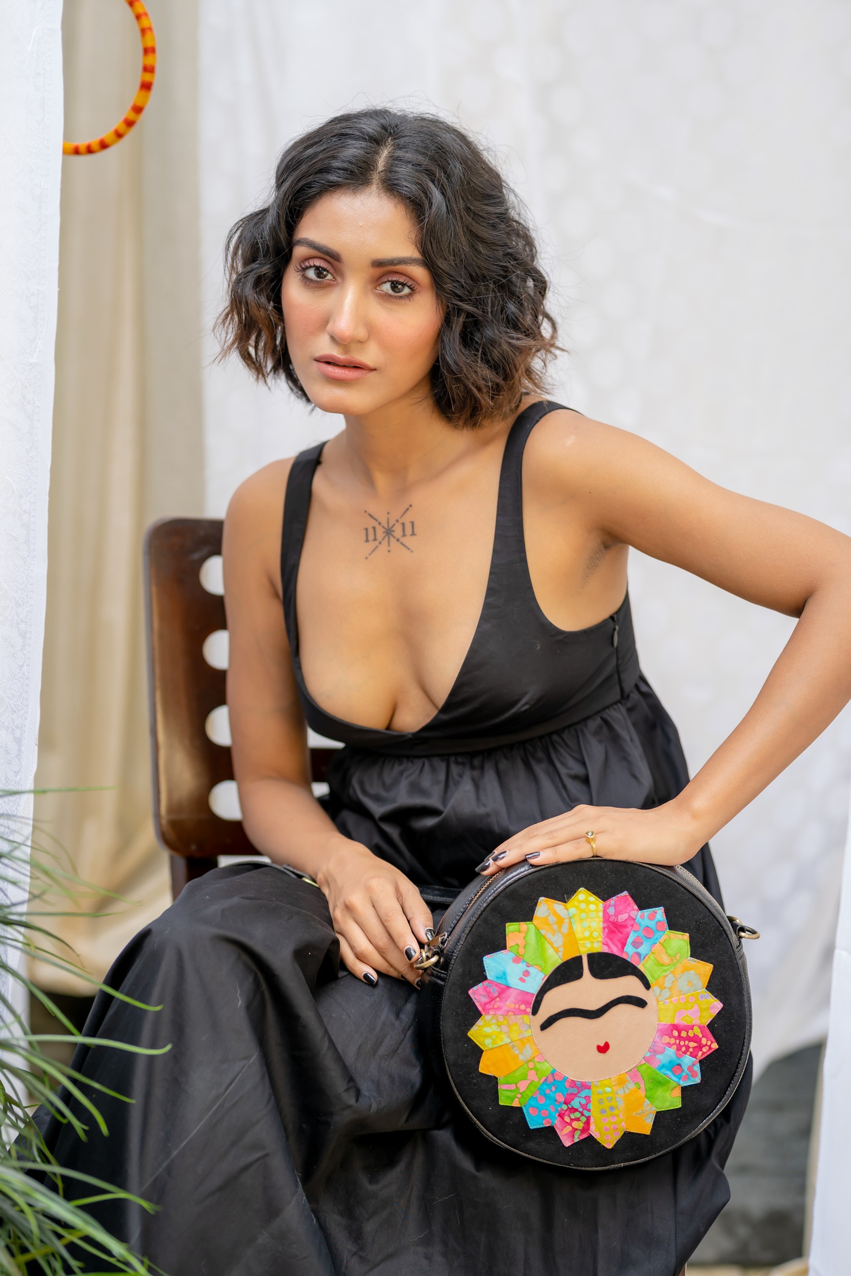 Frida Pointed Petal Round Black 9.5″ Sling Bag