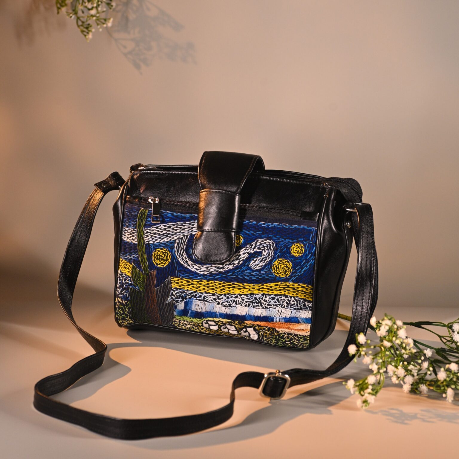 Starry Night 5 Pocket Pure Leather Sling Bag