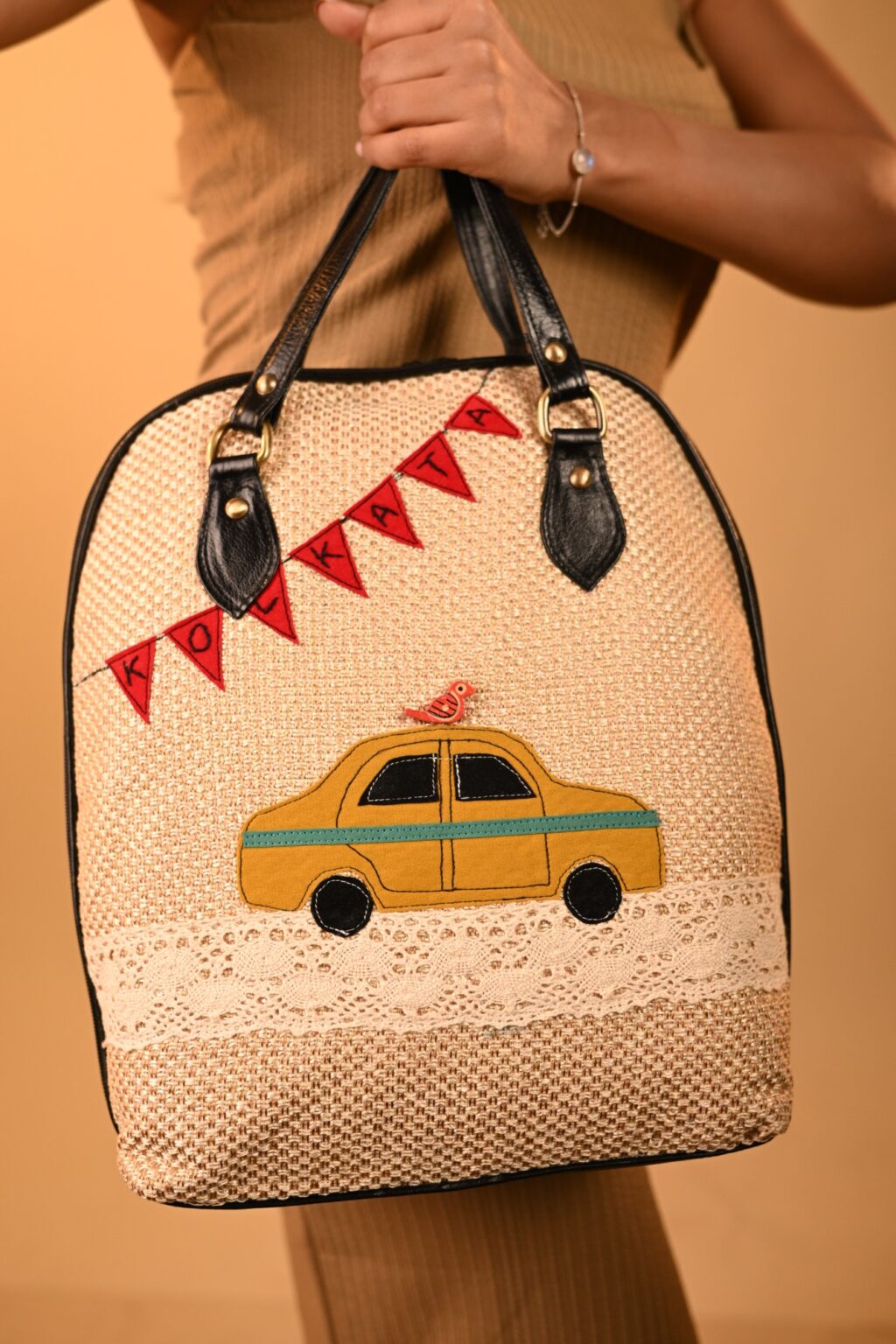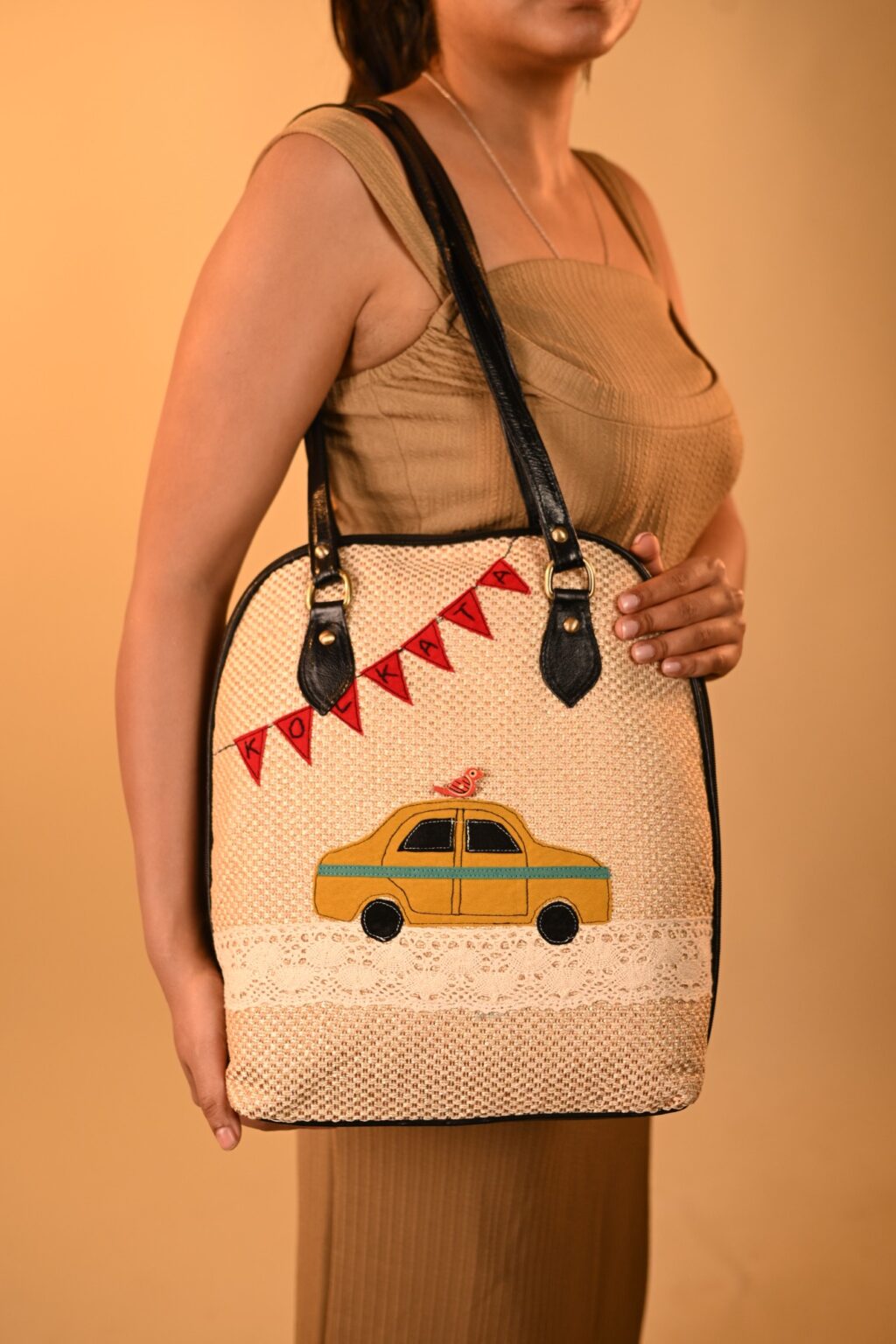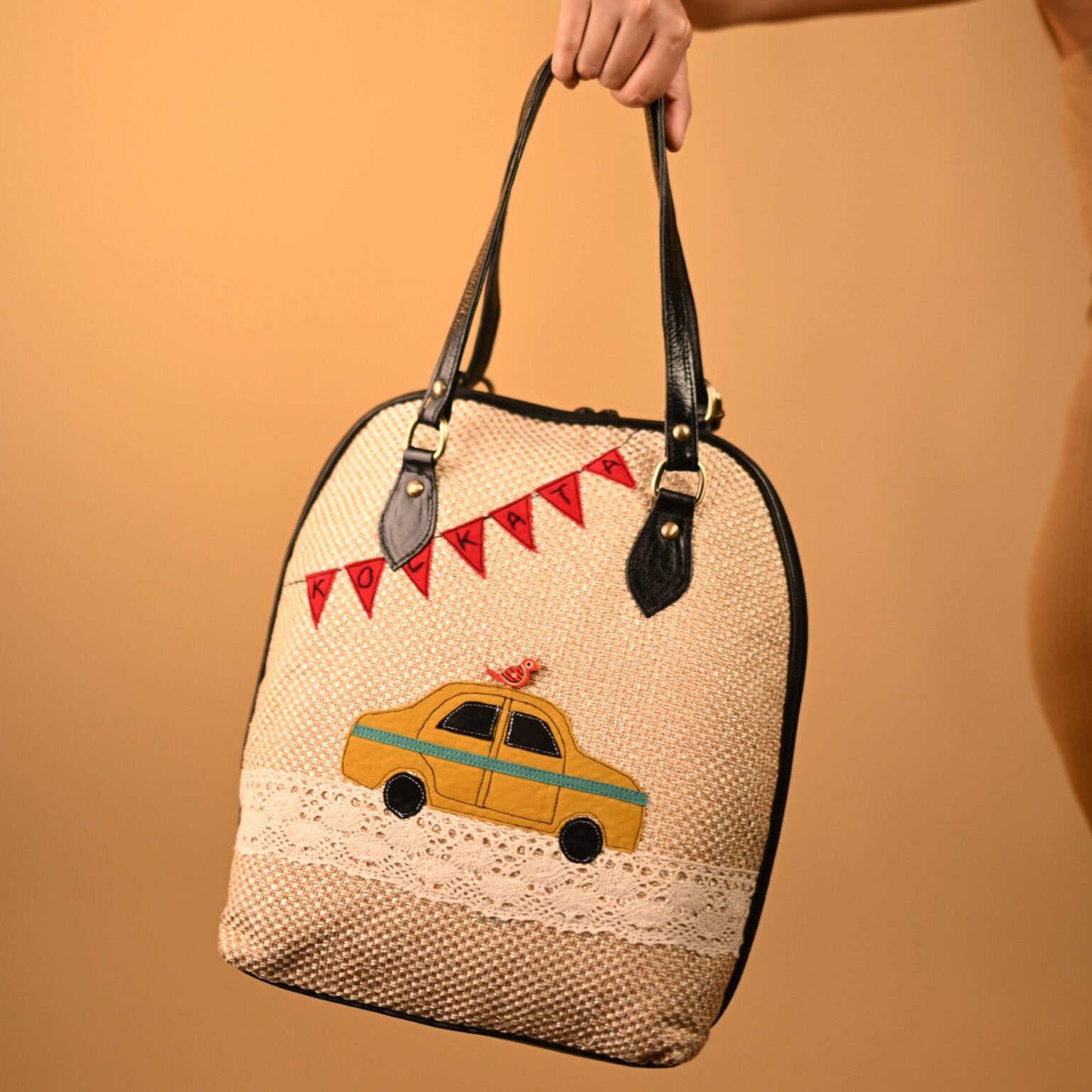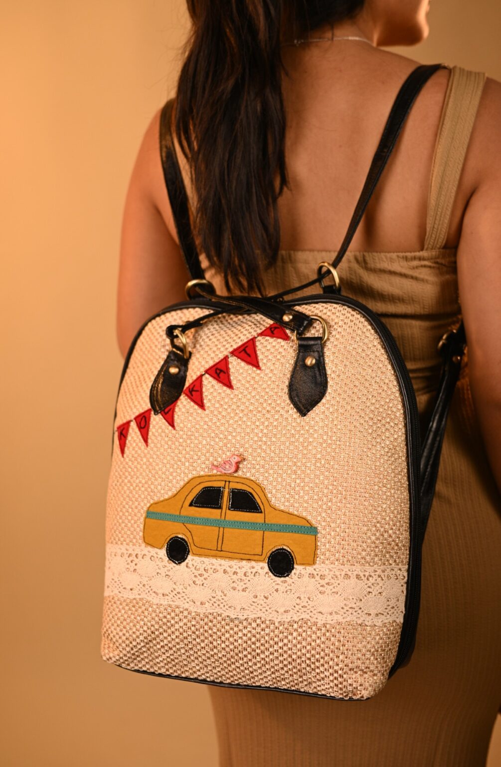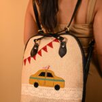 This unique pure leather bag pack cum sling design features hand-embroidered artwork. It’s a multiuse design for office and travel. Its spacious, compact design includes 1 all around zipper closure, 1 inside laptop compartment, 1 inside partition zipper pocket, and space for essentials like your laptop, books, water bottle, umbrella and purse. It can be worn as a handbag, sling bag, or a bag pack.