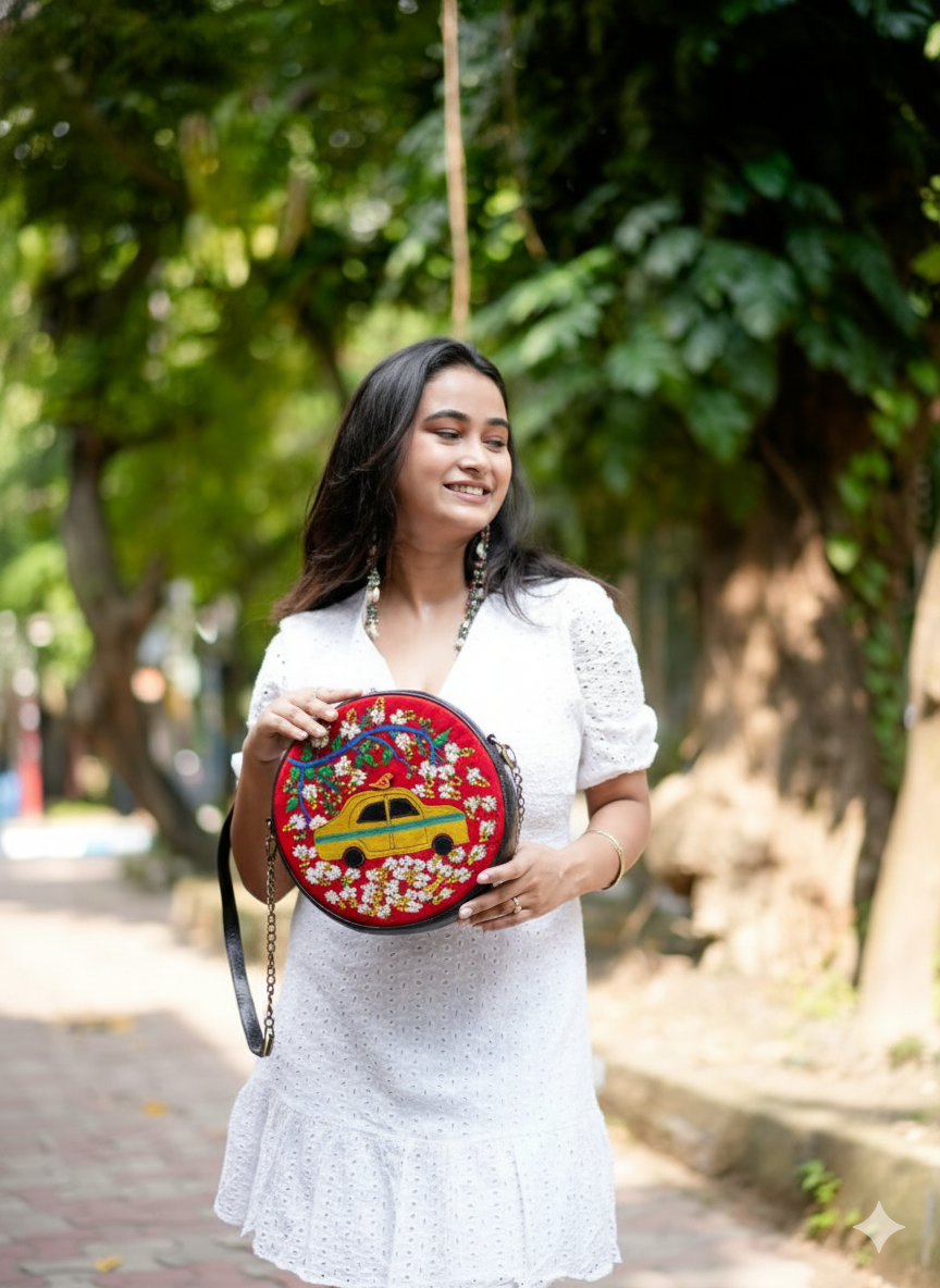 This unique sling bag features an intricate hand-embroidered artwork. Its sleek, compact design includes 1 zipper, 1 inside zipper pocket, 1 back zipper pocket and space for essentials like your phone, cosmetics, small umbrella, water bottle and cash. Equipped with a removable strap, it can be worn as a crossbody, shoulder bag, or clutch for any occasion.